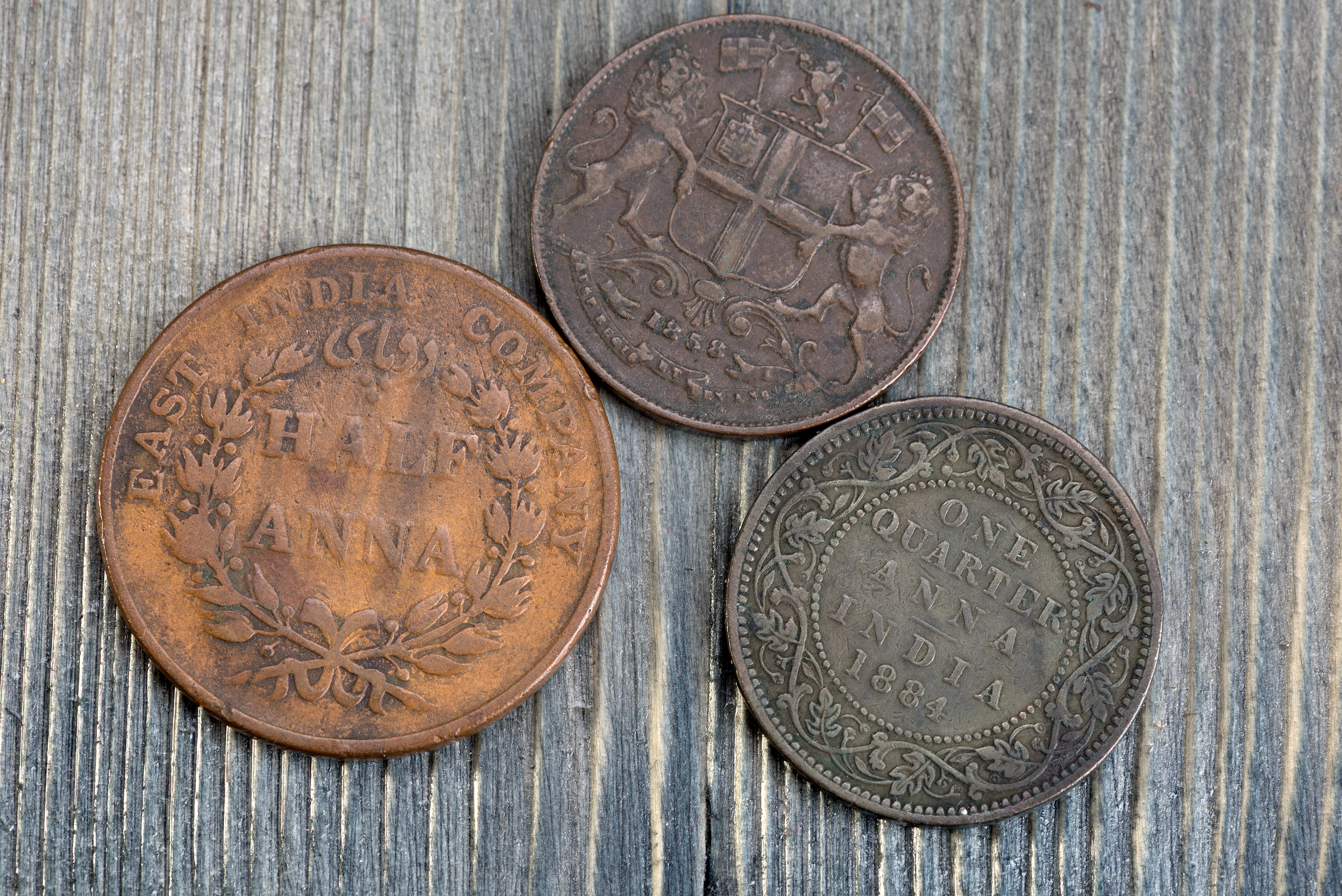 Previous Image Next Image old coins of the East India Company old coins of the East India Company – half and one quarter anna